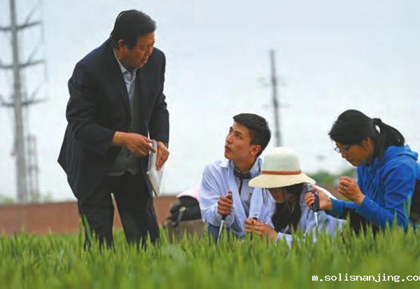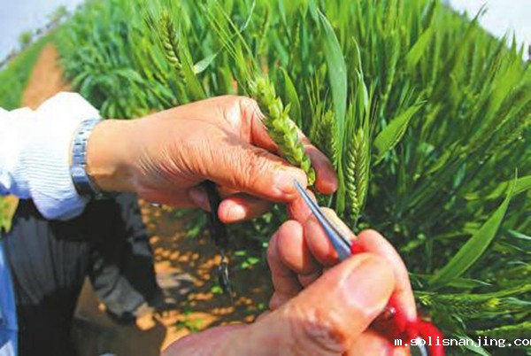 4月27日,室外气温日渐升高,王辉俯身在育种后代分离群体中查看条锈病接种发病情况,选择抗病植株。要对三十亩试验田近百万株小麦的抗性、株型、叶相和熟期反复甄选绝非易事,这样的工作一直要坚持到收麦之前。