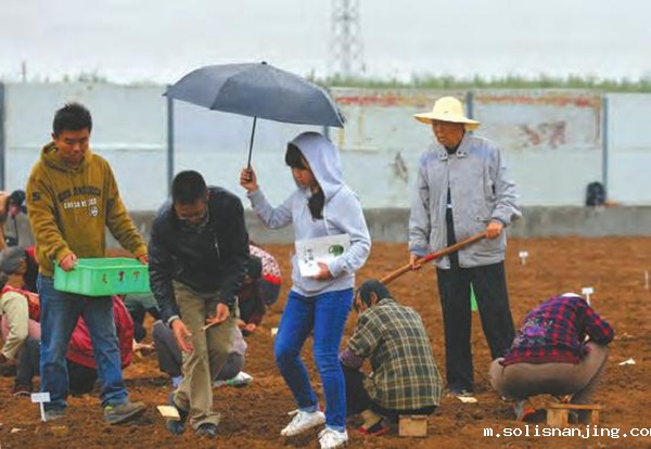 10月5日,国庆长假还没有结束,正在试验田进行育种材料播种的工作并没有因为一场小雨的到来而中断,王辉让学生用自己的雨伞保护好育种材料,而他却淋着雨和大家一起干活。